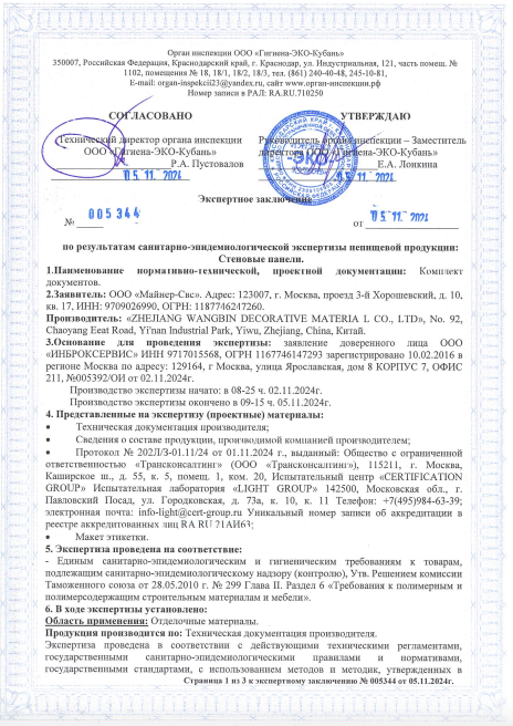 Экспертное заключение о безопасности стеновых панелей